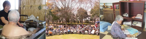 「当たり前の生活を、その人らしく生きる」を方針に、起きて食べる食事、トイレでの排泄、個浴での入浴などの日常ケアに加え、その人らしさを考えた個別ケアを行い、外出や旅行、ターミナルケアにも取り組んでいます。